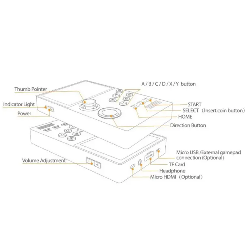 1.Memory card is a system file card and ROM installation is not supported for the time being. All self-formatting and deleting of memory card files is the buyer's own behavior, which causes the system to be unable to start up, connect to Blue tooth, WIFI, etc. This store is not responsible. 2.As the functions supported by the chip have been maximized, not all games can be supported. Incompatibility of individual games is a normal phenomenon, and this shop does not accept such dispute compensation. 3.A19 presents the D-PAD to the buyer for installation and use, improving the buyer's experience. If you can disassemble the machine and install it yourself, you can disassemble the machine and install it carefully. This behavior is the buyer's own willing behavior. If you disassemble the machine and cause the machine to deteriorate, this shop is not responsible for it. Please operate carefully, thank you for your cooperation.